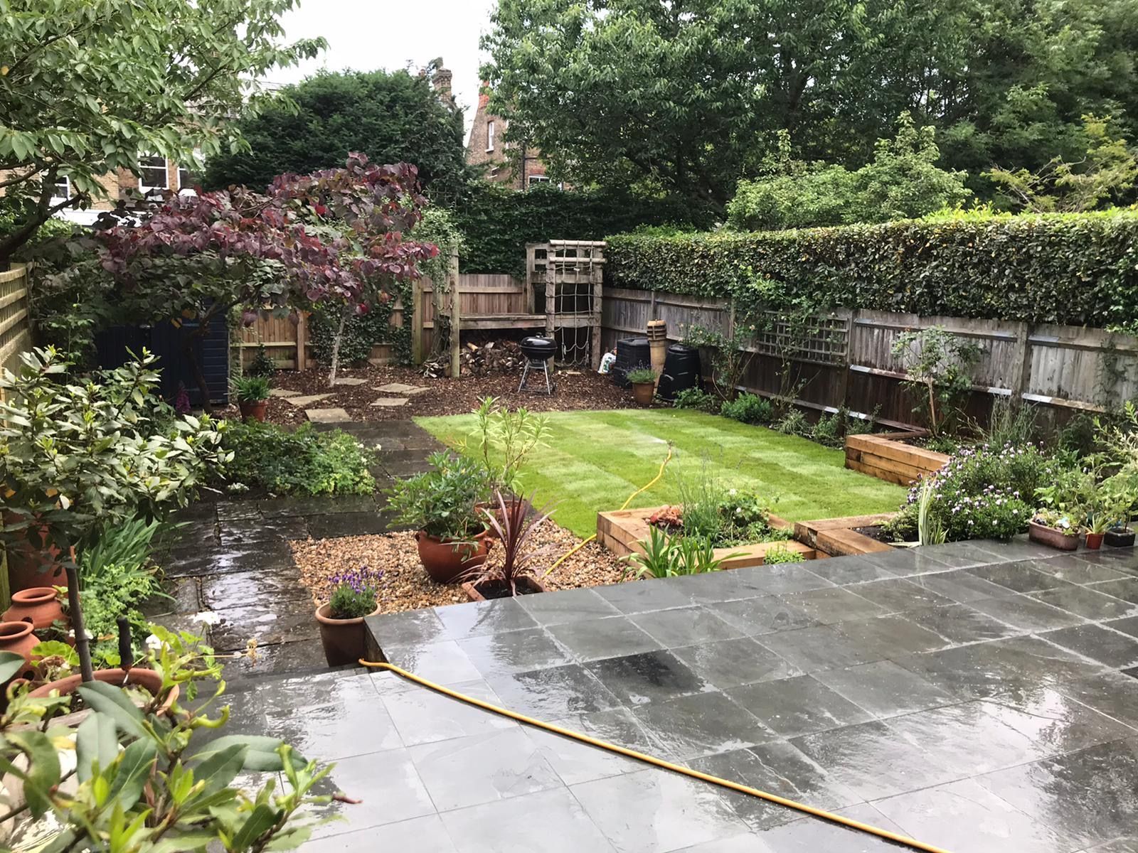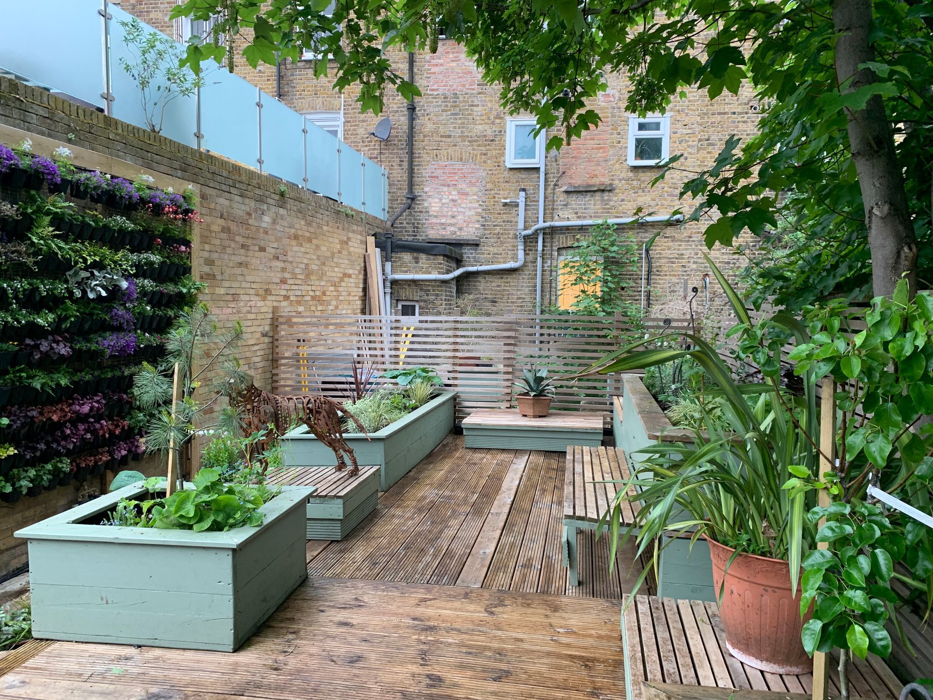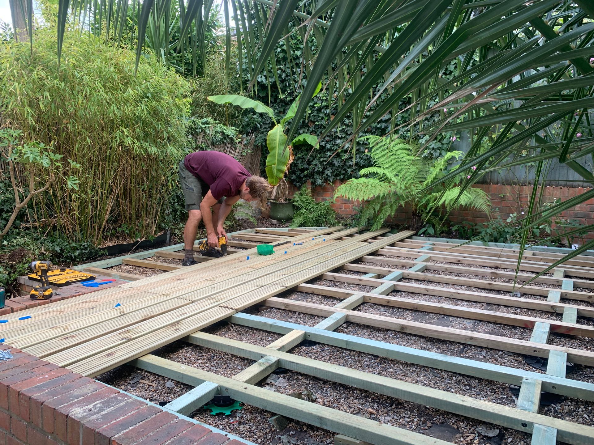 For this project, the challenge was to relay a like-for-like decking within a small and compact area with shade loving plant species.