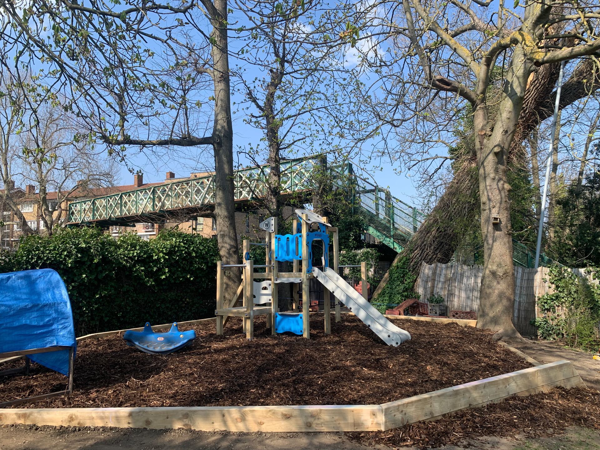 For this project we built a package-ready children's jungle gym. It was boardered, sunk in safely to secure it and dressed with soft landing bark